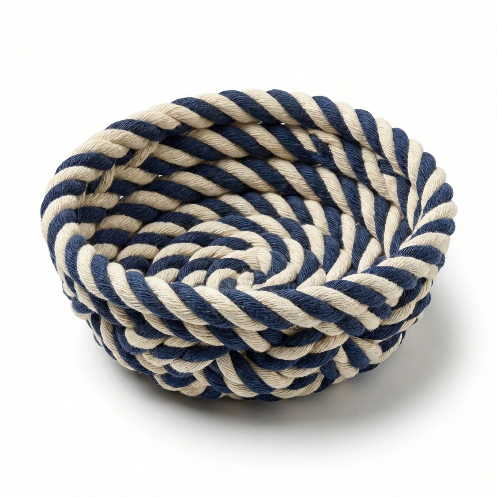 Coiled and woven from the same marine-grade rope that runs through every Loft & Strand piece. The Woven Rope Bowl starts as a single continuous length of cordage — wound by hand, bound with waxed linen at each pass — until it becomes a vessel that holds its shape without fasteners or adhesive.